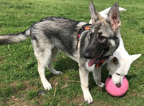 Zeus is a straight back, large bone, old school German Shepherd from Royalair. He is a beautiful short haired Silver Sable who has such a loving personality. He is very playful with his sister Akela with lots of energy and a high ball drive. Then he can be so sweet when playing with the new puppies in the house. He is still growing but expect him to be over 100+ pounds and as tall as his dad, Royalair's Siver Struck. He is DM clear, Embark tested and clear and just waiting for his PennHip results (Both parents passed). Can't wait to see his upcoming puppies in the new year (2023/2024) as we are so blessed to have Zeus in our lives.
